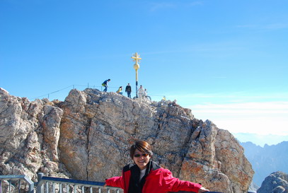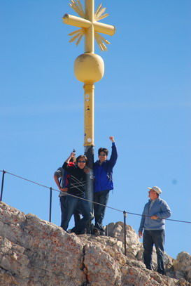 GP不愧是在阿爾卑斯山區,一早起來馬上就覺得溫度比前幾天下降許多,穿上這次最厚重的狗鐵絲裝備,泡好朋友L從台灣帶來的薑茶,向祖格峰(Zugspitze)出發囉! 終於到達金十字架,攻頂成功!!