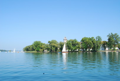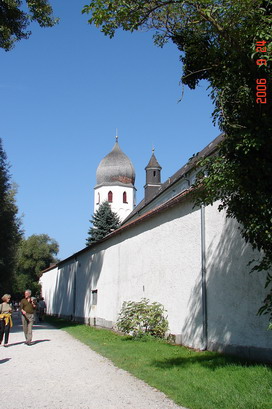 女島因島上的聖母瑪麗亞女子修道院而得名,(男島上原先是男子修道院,後來才由路德維格二世買下建造城堡),船快到女島時就可在湖面上看到修道院的高塔,女島附近的湖面上船隻更多,一派休閒度假勝地的樣子