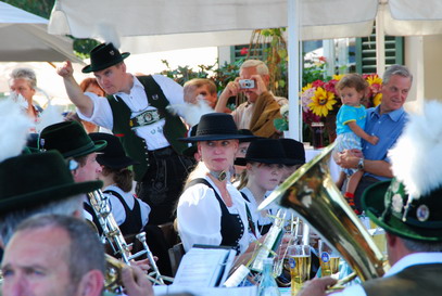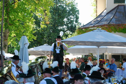 之後我們就隨處走走,走著走著又傳來音樂聲,今天是所有巴伐利亞的樂團都擠到基姆胡來了嗎?這個樂團不知是受邀到餐廳表演還是用餐,只見每個人桌上都是一杯啤酒,吹完一首馬上大家乾杯一下,好不快活,雖然我們沒有在此用餐,但免費的音樂還是可以盡情地欣賞