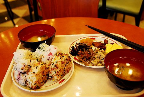 意外的是,這裡的飯團種類挺多,小菜的花樣也不少