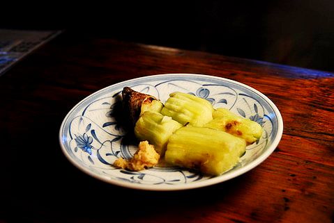 這茄子完全沒有調味,旁邊有一小陀磨好的薑,可淋點醬油沾著吃
