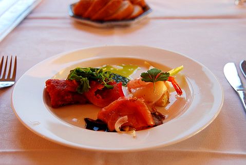季節的前菜:季節時蔬搭配海鮮的前菜,這裡的海鮮全都新鮮得不得了