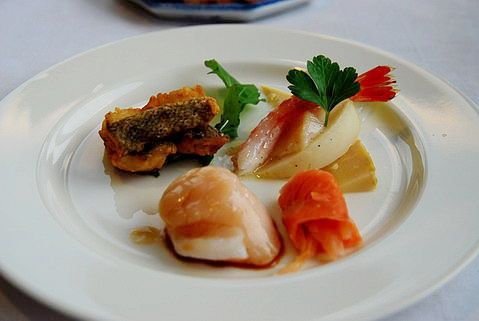 前菜:將新鮮的海味全都聚集一盤,有點日式的吃法