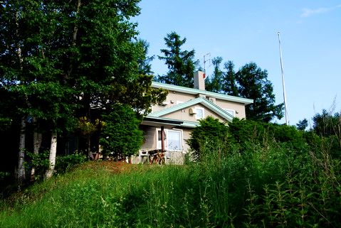 小屋前後都被綠樹花園包圍,有如處在森林中