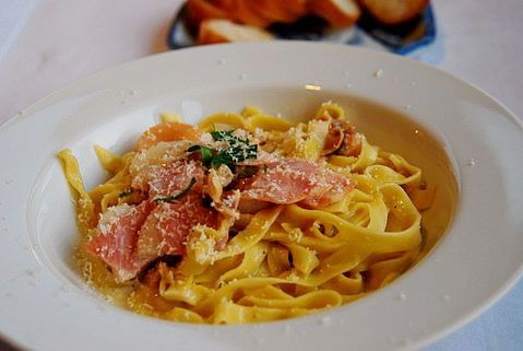 奶油培根義大利麵,裡面還有貝類,今天這義大利麵稍微鹹了點,不過,還是不錯吃